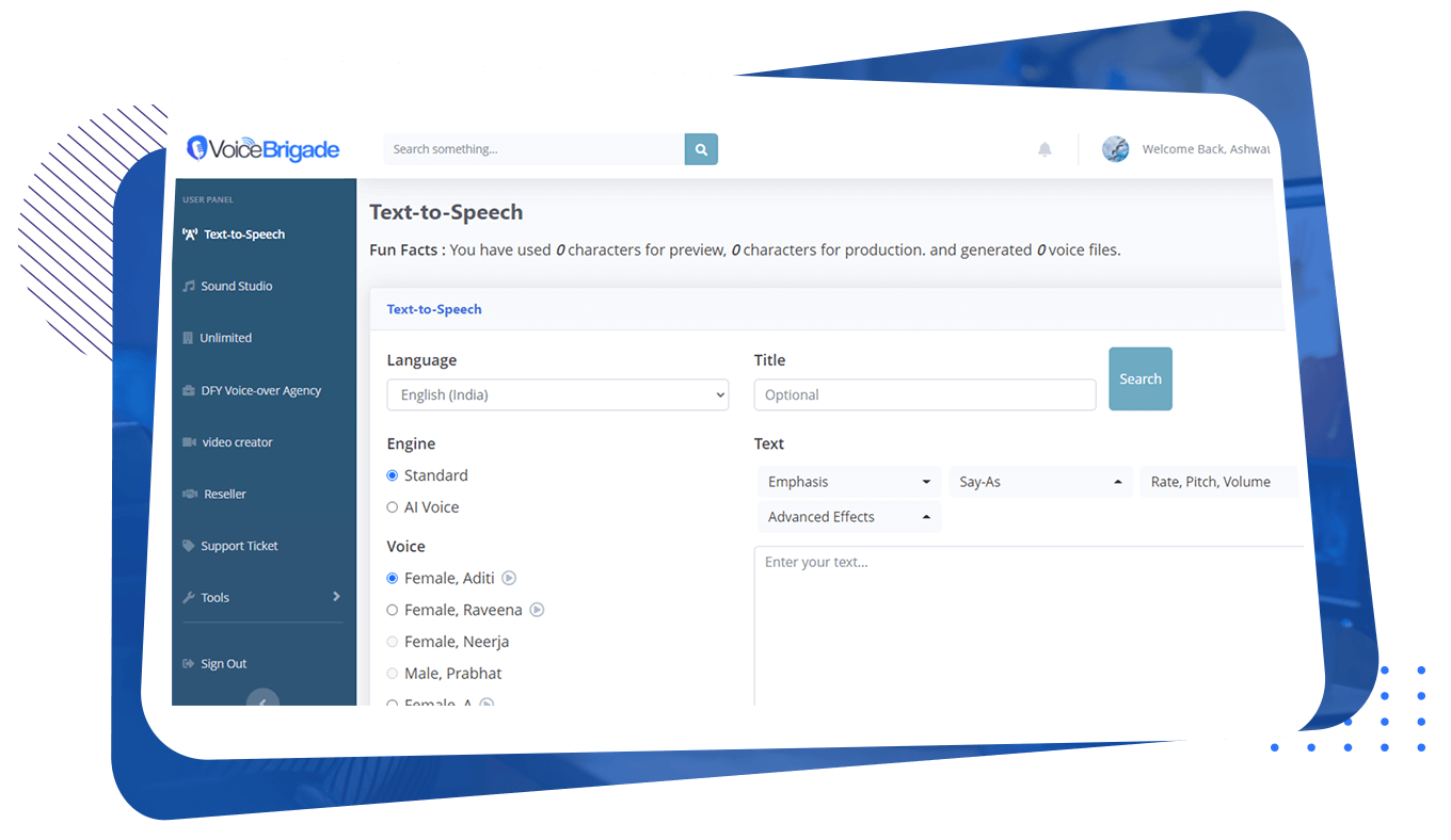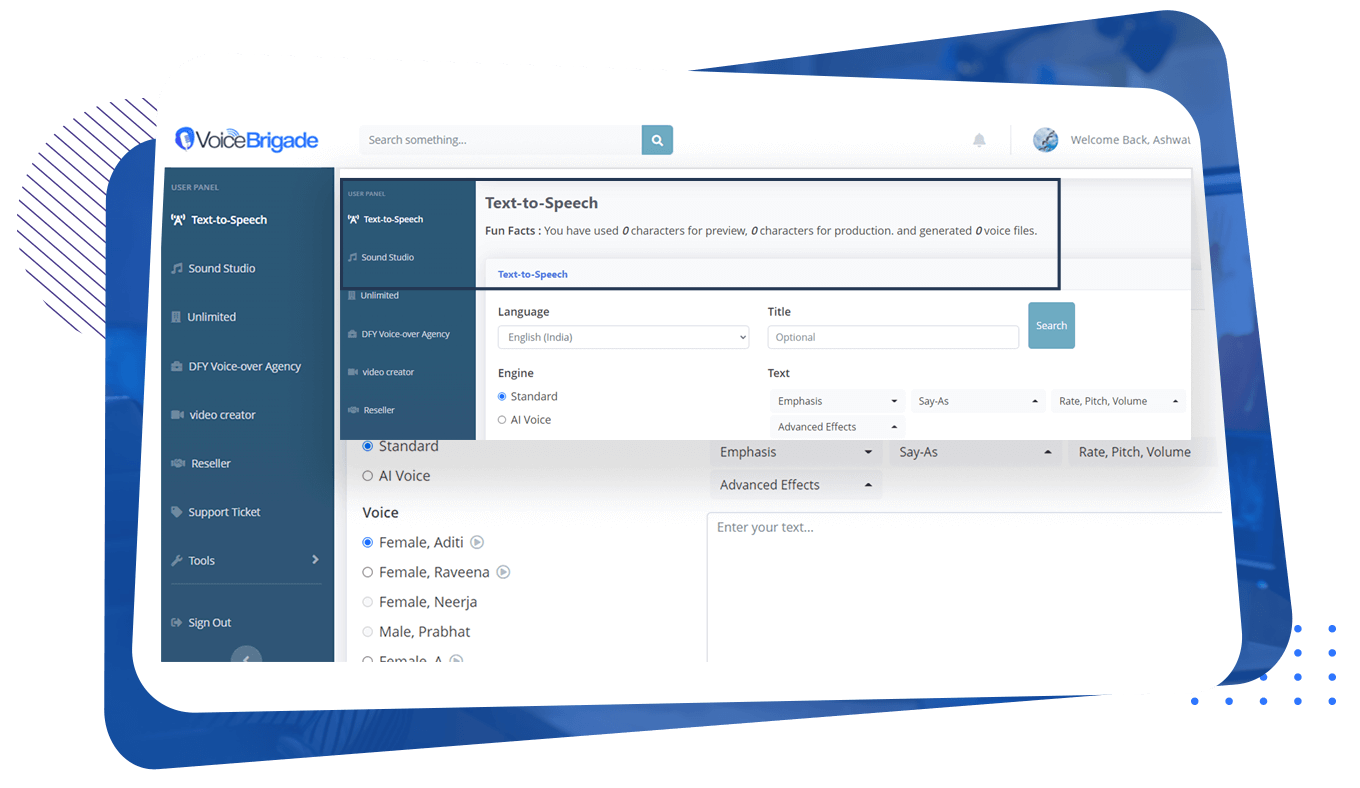 To Begin, Just Login Into The Software And Paste The Text You Need To Convert Into Human Related Sound & Our A.I Based Software Gets Into Action.